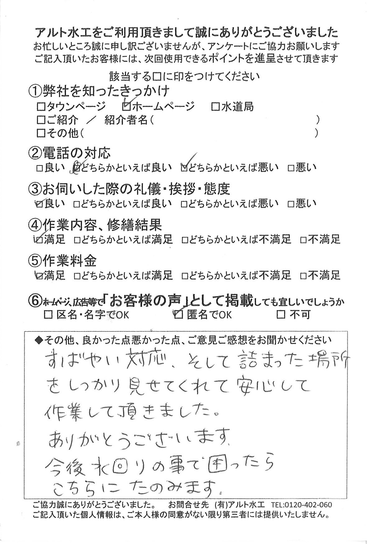 | 北九州市八幡東区 お客様の声 (水漏れ修理)