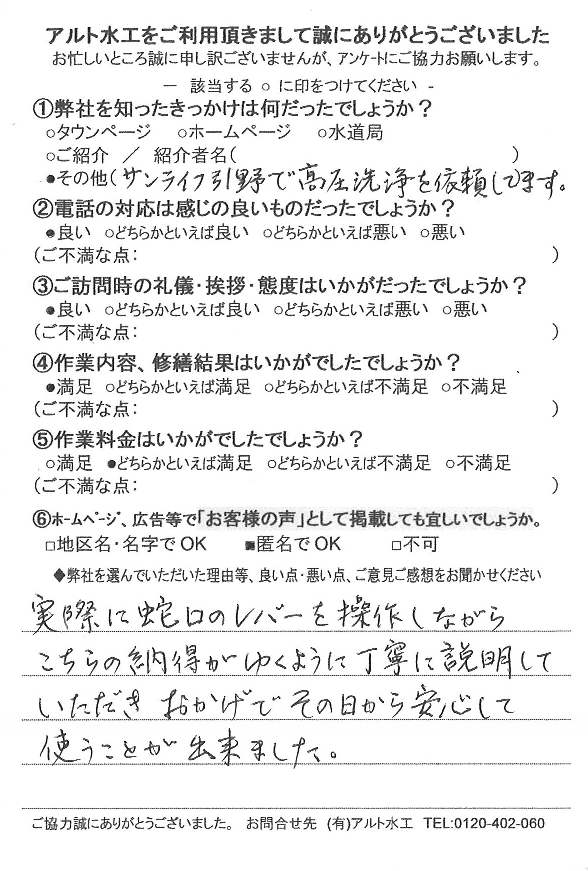 小倉南区のアルト水工です。